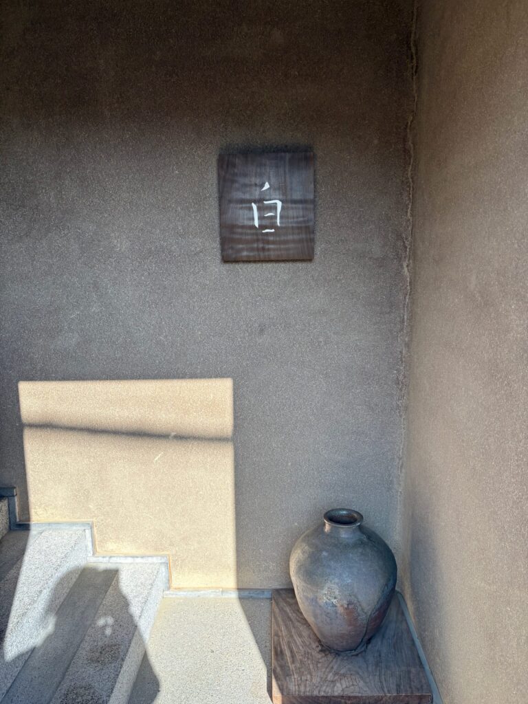 入り口から侘び寂びの世界観。入ると、乾いた静かな空気と、和の気配。